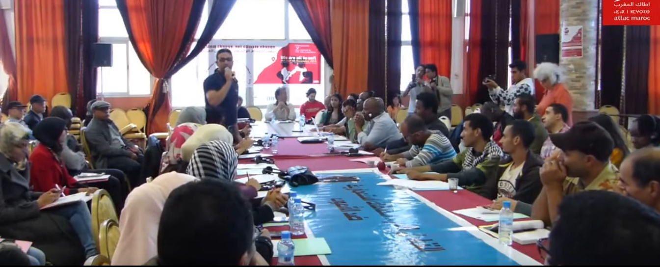 إننا، نحن المشاركون في ندوة آسفي، نسجل تضامننا مع كافة النضالات بالعالم، وخصوصا بالمغرب الذي يعرف هذه الأيام احتجاجات عارمة ضد “الحكرة” في الحسيمة والعديد من المدن الاخرى، كما هو عليه الحال في باقي مناطق المغرب الكبير. إن صوت النضال يجب يعلو وأن يصبح مسموعا اكثر فاكثر.