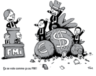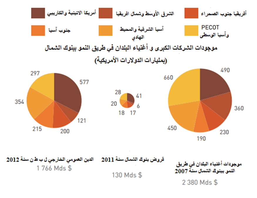 في الوقت الذي تحافظ فيه حكومات البلدان في طريق النمو على ديون كبيرة لبنوك الشمال، تملك الشركات الكبرى وكبار الأغنياء في تلك ب-ط-ن حسابات في نفس هذه البنوك، وتمثل 14 ضعفا من قيمة هذه الديون العمومية، مما يبين بشكل واضح ضرورة النضال ضد هروب الرساميل ومن أجل استعادة الخيرات التي لا تصل لسكان البلدان في طريق النمو المنهوبين من قبل الطبقات السائدة المحلية.