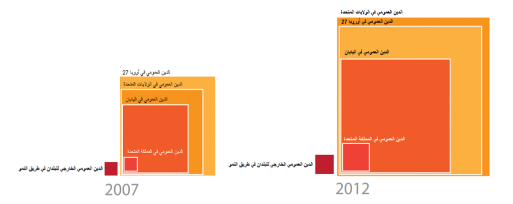ارتفعت مديونية البلدان التي تمت دراستها بين سنتي 2007 و2012 ب 67℅، والدول المتقدمة هي التي عرفت الارتفاعات الأساسية، وكما رأينا ، فقد ترافقت هذه الارتفاعات الفجائية مع الركود الاقتصادي وتكاليف إنقاذ البنوك.