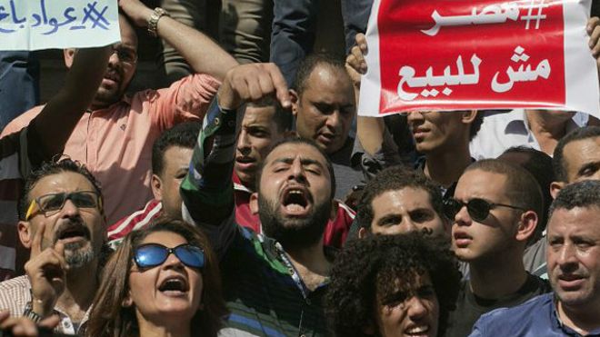 ووجهت أحزاب المعارضة دعوة للمواطنين للتظاهر في ميادين القاهرة والمحافظات للاحتجاج على موافقة البرلمان المصري على “اتفاقية تيران وصنافير”، وتبلورت حملة شعبية للدفاع عن الأرض.