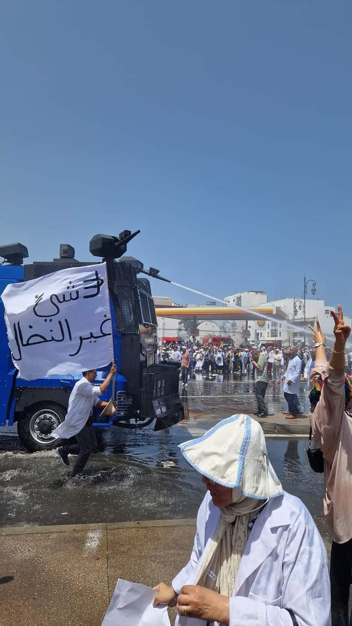 تنامت نضالات شغيلة قطاع الصحة خلال السنوات الماضية ضد هذا الهجوم النيوليبرالي الخطير، خصوصا ضد ما تضمنه مشروع ما سمي بالمجموعات الصحية الترابية وازدهار الدعم للقطاع الخاص. تكتل الشغيلة منذ شهر أبريل 2024 في إطار تنسيق نقابي وطني يشمل نقابات القطاع الثمانية، وخاضوا أشكال نضال متنوعة من إضرابات عن العمل، ووقفات إقليمية وجهوية ووطنية، تعاملت معها الدولة كعادتها بمنطق المناورة لاحتوائها أو تجاهلتها بهدف استنزافها. هذا ما دفع بالشغيلة لتصعيد النضال بتنظيم مسيرة احتجاجية وطنية بالرباط يوم 10 يوليوز 2024، عرفت مشاركة واسعة وغير مسبوقة من حيث حجمها وحضور النساء والشباب من مختلف الفئات والتخصصات. تدخلت أجهزة الدولة بقوة لقمع المسيرة بشكل عنيف، نتج عنه عدد من الإصابات واعتقال 28 من المتظاهرين ومتابعتهم في حالة سراح، وهذا ما يعكس تخوُفَها من تقدم النضال وامتداده إلى قطاعات أخرى، وبالتالي سعيُها إلى وقف هذه الدينامية النضالية القاعدية الصاعدة التي قد تمتد إلى حراك شامل للقطاع الصحي كما كان الامر في حراك التعليم.