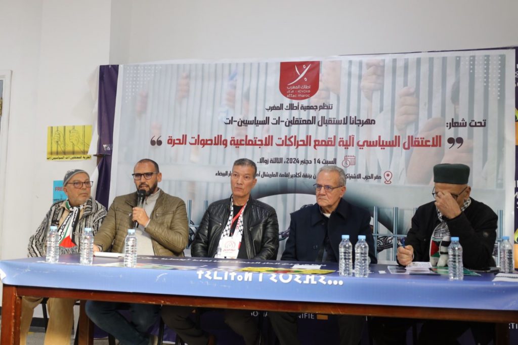 نظمت جمعية أطاك المغرب، عضو الشبكة الدولية للجنة من أجل إلغاء الديون غير الشرعية، مهرجانا لاستقبال المعتقلين السياسيين بالمغرب، تحت شعار “الاعتقال السياسي آلية لقمع الحراكات الاجتماعية والاصوات الحرة”، وذلك يوم السبت 14 دجنبر 2024 بمقر الحزب الاشتراكي الموحد بالدار البيضاء.
