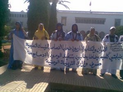 ما يزيد عن أسبوع، أمام نيابة التعليم في مدينة كلميم، وأعوان المؤسسات التعليمة يخوضون معركة نضالية بطولية من أجل المطالبة بحقهم بالإدماج الفوري في الوظيفة العمومية، بعد سنوات من العمل التطوعي دامت زهاء 18 سنة في الخدمة، انطلقت معركة الأعوان بعد مجموعة من الوعود التي تلقوها بحل مشكل إدماجهم في الوظيفة العمومية، لكن بدون أية نتيجة، يستمر اعتصام الأعوان منذ الساعة 10 صباحا إلى حدود الساعة الرابعة مساء، في ظروف مناخية صعبة، بعد كل هذه المدة وعدت النيابة بفتح حوار معهم في القريب ليرفع الشكل النضالي إلى حين .