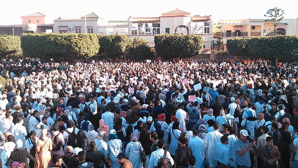 برهن الأساتذة المتدربون يوم الخميس 14 يناير 2016 أن جهودهم لمقاومة إجراءات الدولة لضرب الطابع العمومي للتكوين و التعليم لا يمكن أن تذهب سدى. فرغم الهجوم القمعي البوليسي ليوم الخميس الماضي الذي خلف في صفوفهم ضحايا كثر و حالات صحية خطيرة تتطلب رعاية طبية فائقة، إلا أنهم نجحوا، مقابل ذلك، في دفع نقابات التعليم باعتبارهم المعنيين المباشرين بمواجهة الهجوم الحالي على قطاع التعليم إلى تحمل مسؤولياتهم. فبحافز التضامن اندفعت خمس نقابات بقطاع التعليم إلى تنسيق جهودها بالدعوة إلى إضراب جهوي في قطاع التعليم مرفوق بوقفة أمام المركز الجهوي للتربية والتكوين بإنزكان، ليس فقط احتجاجا على القمع و التعبير عن التضامن و وحدة المصير، و لكن أيضا للمطالبة بإلغاء كل من مرسوم فصل التكوين عن التوظيف و مرسوم تقليص المنحة.