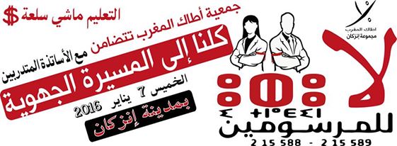 إننا في مجموعة إنزكان لأطاك المغرب و بمناسبة خوض الأساتذة المتدربين على الصعيد الجهوي لمسيرة جهوية يوم الخميس 7 يناير 2015 نعلن ما يلي: