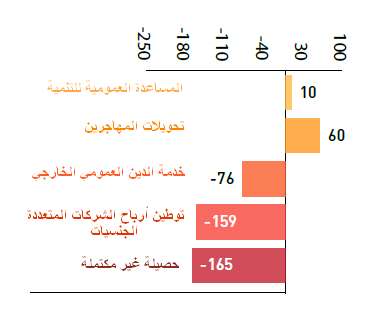 كما يشهد الجدول، فإن المساعدة العمومية للتنمية المحسوبة للشرق الاوسط خلال 2012 قد خصصت عمليا في مجملها لتسديد خدمة الدين الخارجي. أما بخصوص تحويلات المهاجرين، فتشكل ثلاث مرات الم .ع .ت التي تمنحها حكومات الشمال.
