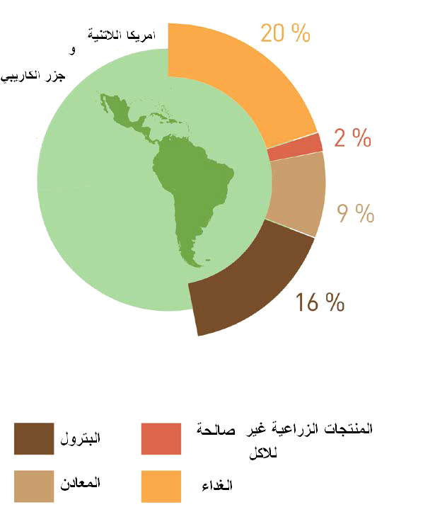 مبيان 12- نصيب المواد الاولية من صادرات السلع خلال 2012 ( % من المجموع) : أمركا اللاتينية و الكاريبي